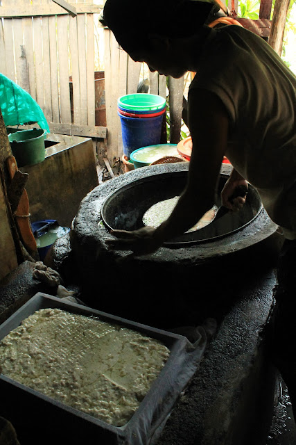 To finish off the day, we managed to hitchhike to the nearby village of Karang. It was a last minute decision, but a grateful one at that. This village is famous for its tofu production. After a quick hitched ride and quick walk we found ourselves in the middle of a small local tofu "factory". Let's just say that the concept of a factory is a bit too much, as this place was a real traditional tofu production house. The owner was surprised from seeing the four of us there and was glad to show us all the steps to produce the vegetarian delight that so many europeans pay a fortune for. At one point we were able to buy a few kilos of tofu at an excellent "factory" price. A great snack/lunch after a whole day of discovering Borobudur. The workers had time to take pictures with us and have a basic little chat in bahasa Indonesia. At the end we can say that this little improvised move almost delighted us more than the temple itself. The authenticity of the place, the reaction of the owners and the possibility to eat fresh tofu was a unique, non touristic experience. Like the Ijen, the tofu experience, permitted us to immerse ourselves in the local life and feel far away from the beaten backpacker path. Even if it was for a day.